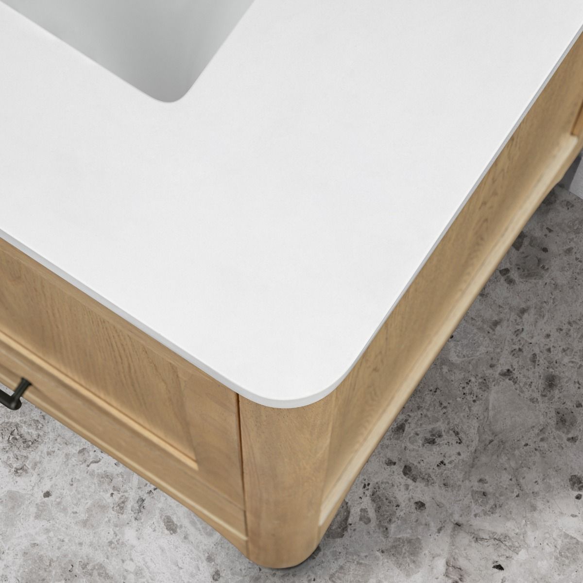 With a traditional aesthetic and plenty of storage, the Adrian vanity by OVE Decors is a smart and stylish choice for your bathroom update. Punctuated by black hardware, its cabinet features an almond-hued Marcona finish and is designed with modern shaker details on its doors and side panels for a touch of class. Topping it all off is a premium white quartz countertop with on-trend rounded corners, matching 3-inch high backsplash, and easy-to-clean undermount rectangular sink design. Its combined design of double-door cabinet and unique lower drawer across all sizes provides ample space to store all your bathroom essentials for a clutter-free look.
