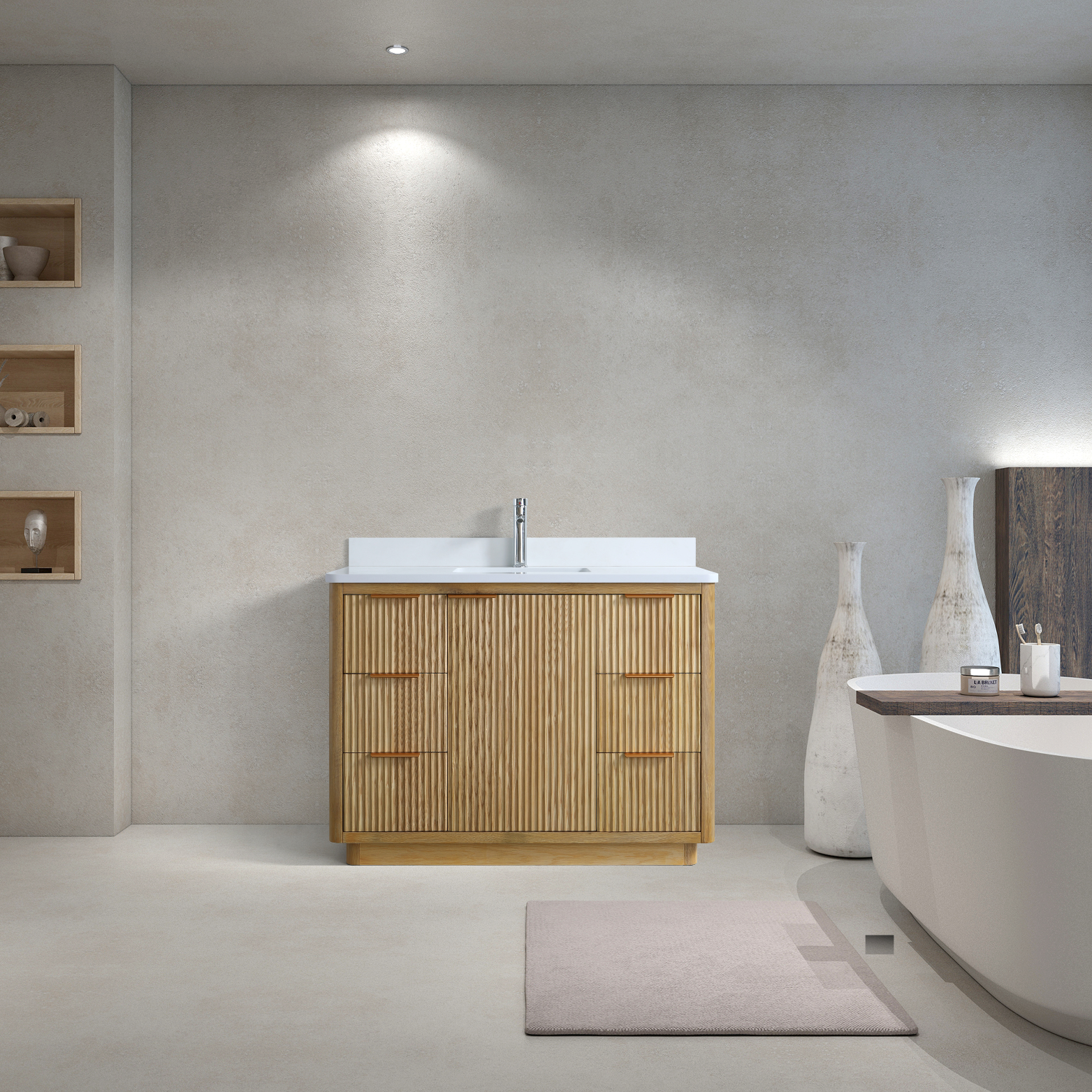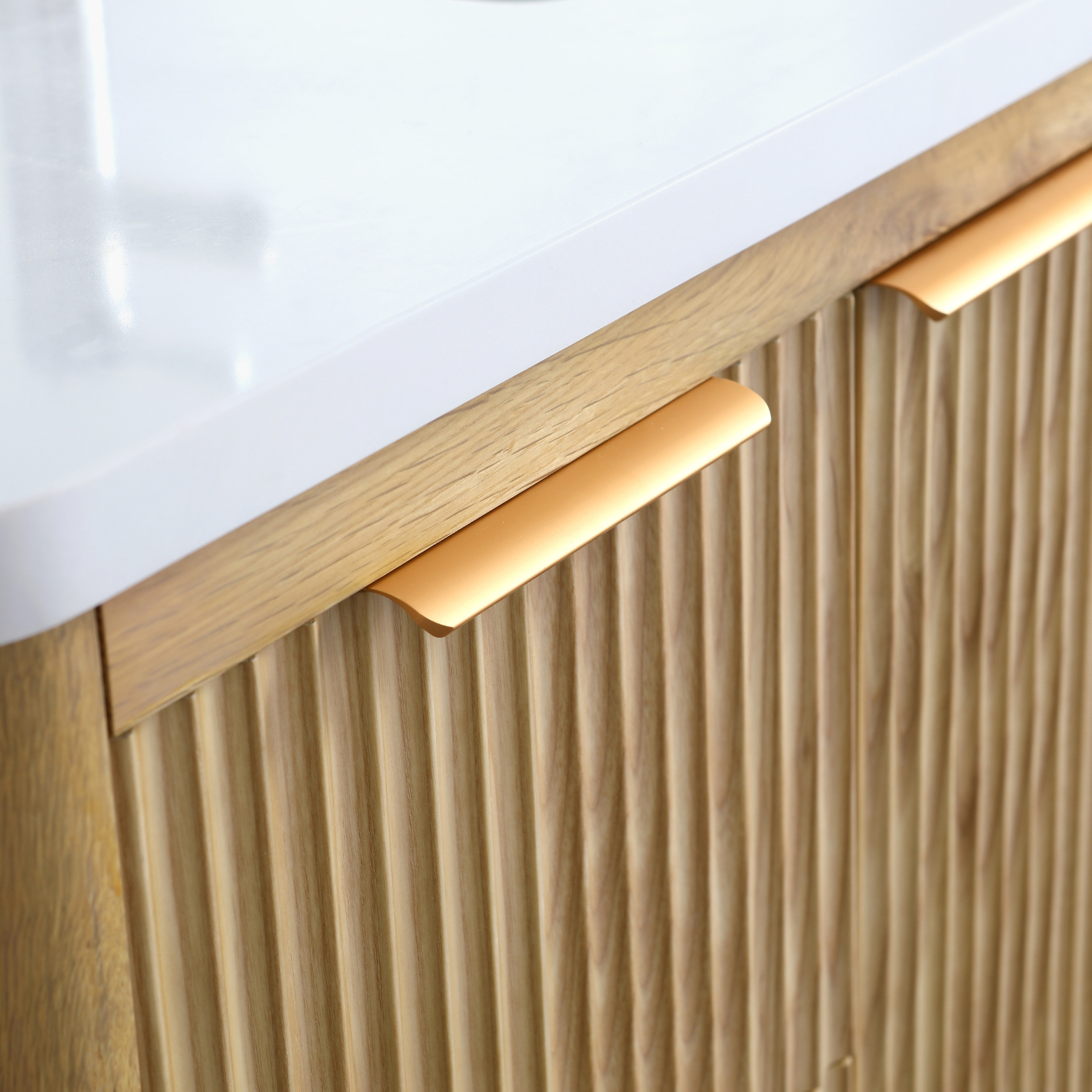 Look no further than Banio Unique - the ultimate choice for quality and style. Our signature flute outer panels are crafted from solid wood, making them not only durable but also exuding a sense of timeless beauty. At Banio Unique, we take pride in using only the finest natural wood materials for our cabinets. This commitment to quality is why our products are so popular in North America. Our customers love the natural wood color lacquer finish that enhances the wood's grain and texture, giving each cabinet a unique and luxurious look. Whether you're looking for a modern minimalist design or a classic traditional style, Banio Unique has a bathroom cabinet that will suit your taste. Our cabinets are not just functional storage solutions; they are also stylish statement pieces that will elevate the look of your bathroom. In addition to our exquisite craftsmanship and high-quality materials, Banio Unique also offers a range of practical features to make your daily routine more convenient. From spacious storage compartments to soft-closing drawers, our cabinets are designed with the modern homeowner in mind.