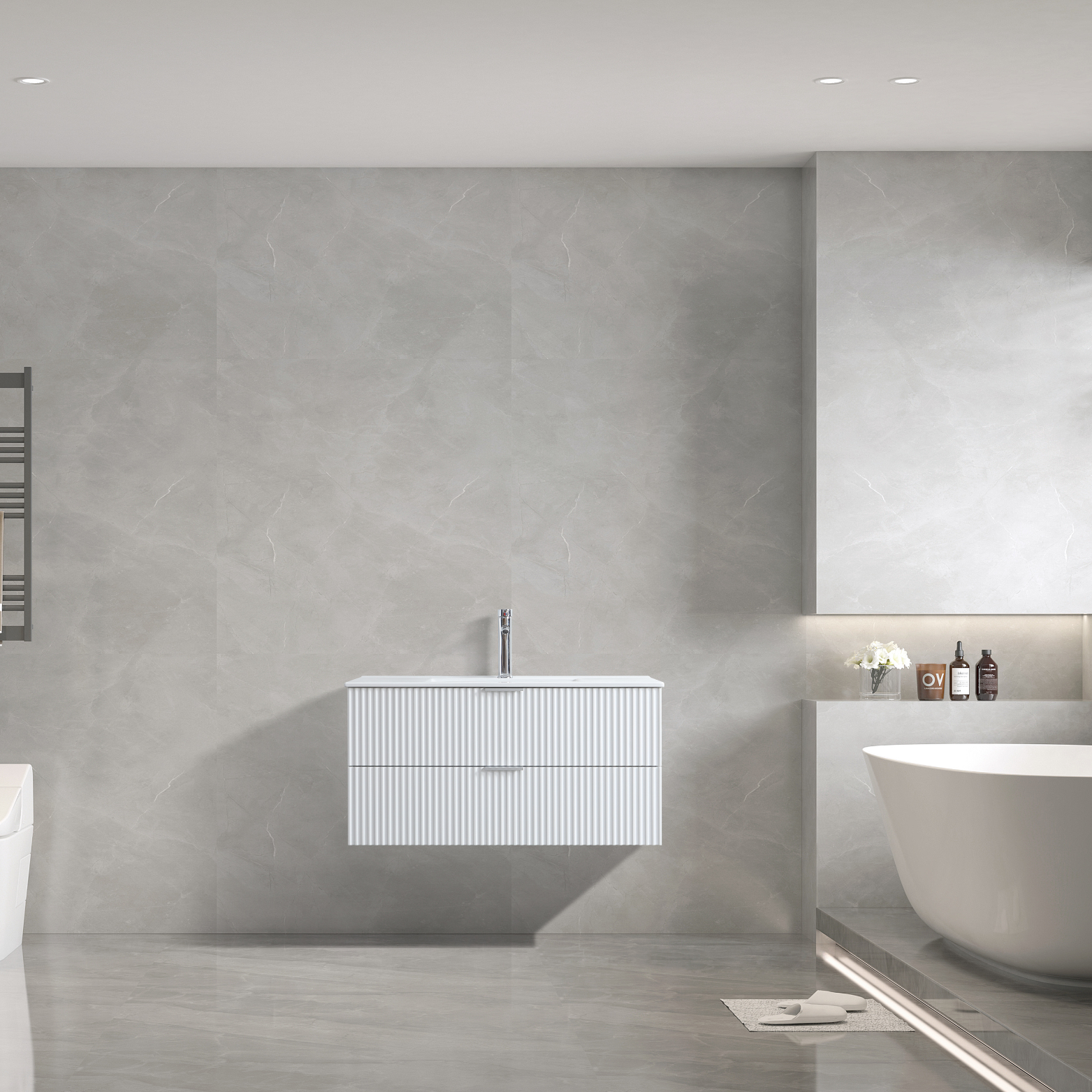 Introducing the versatile Banio Unique brand wall mounted bathroom cabinet, featuring a sleek flute exterior is made with PVC film. With silver handles adding a touch of elegance, this cabinet boasts a minimalist and stylish design that is sure to enhance any bathroom decor. Available in a variety of sizes to suit different spaces, this bathroom cabinet is the perfect storage solution for all your bathroom essentials. The spacious interior includes a storage box for easy organization, allowing you to keep your toiletries and accessories neatly tucked away.