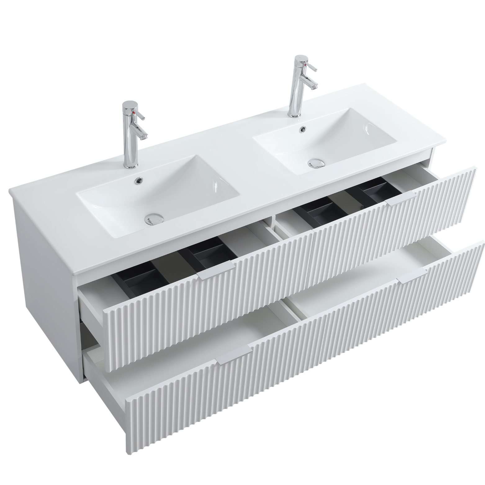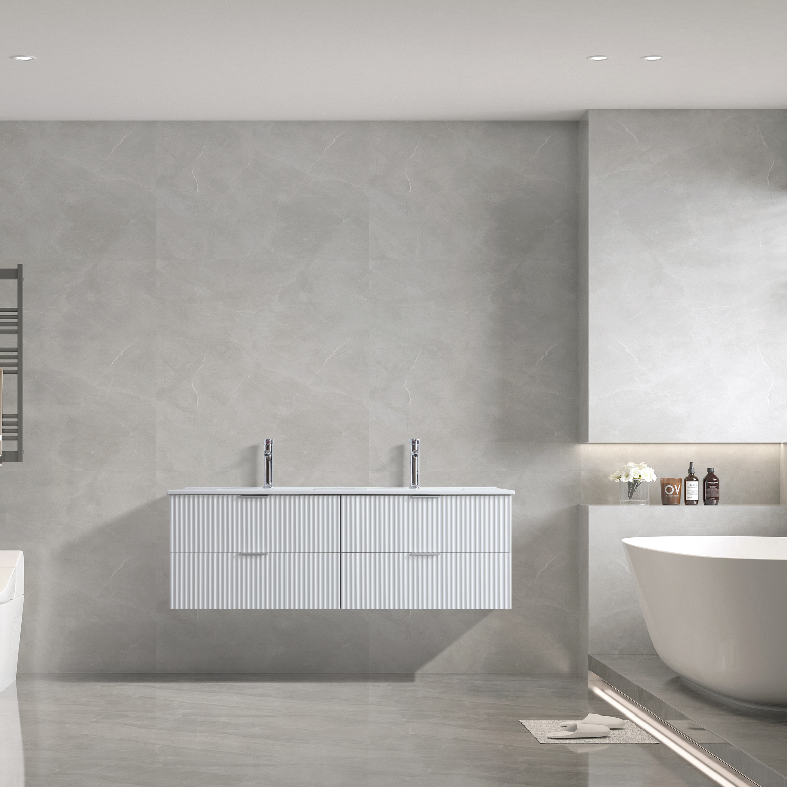 Introducing the versatile Banio Unique brand wall mounted bathroom cabinet, featuring a sleek flute exterior is made with PVC film. With silver handles adding a touch of elegance, this cabinet boasts a minimalist and stylish design that is sure to enhance any bathroom decor. Available in a variety of sizes to suit different spaces, this bathroom cabinet is the perfect storage solution for all your bathroom essentials. The spacious interior includes a storage box for easy organization, allowing you to keep your toiletries and accessories neatly tucked away.