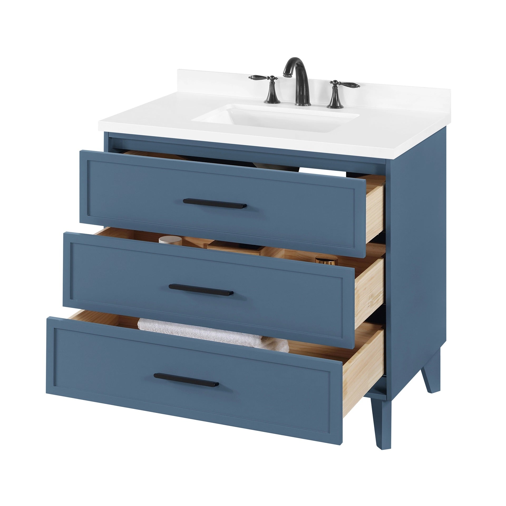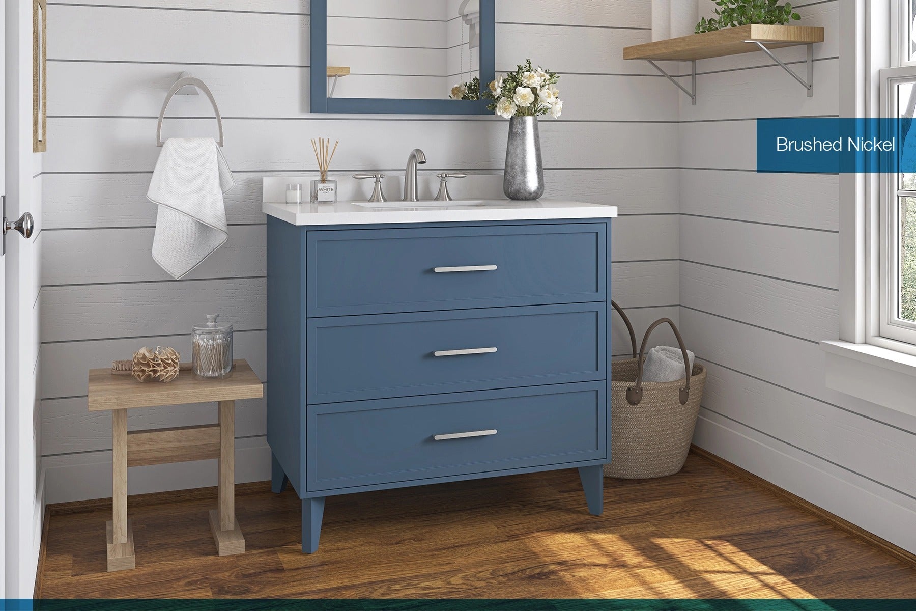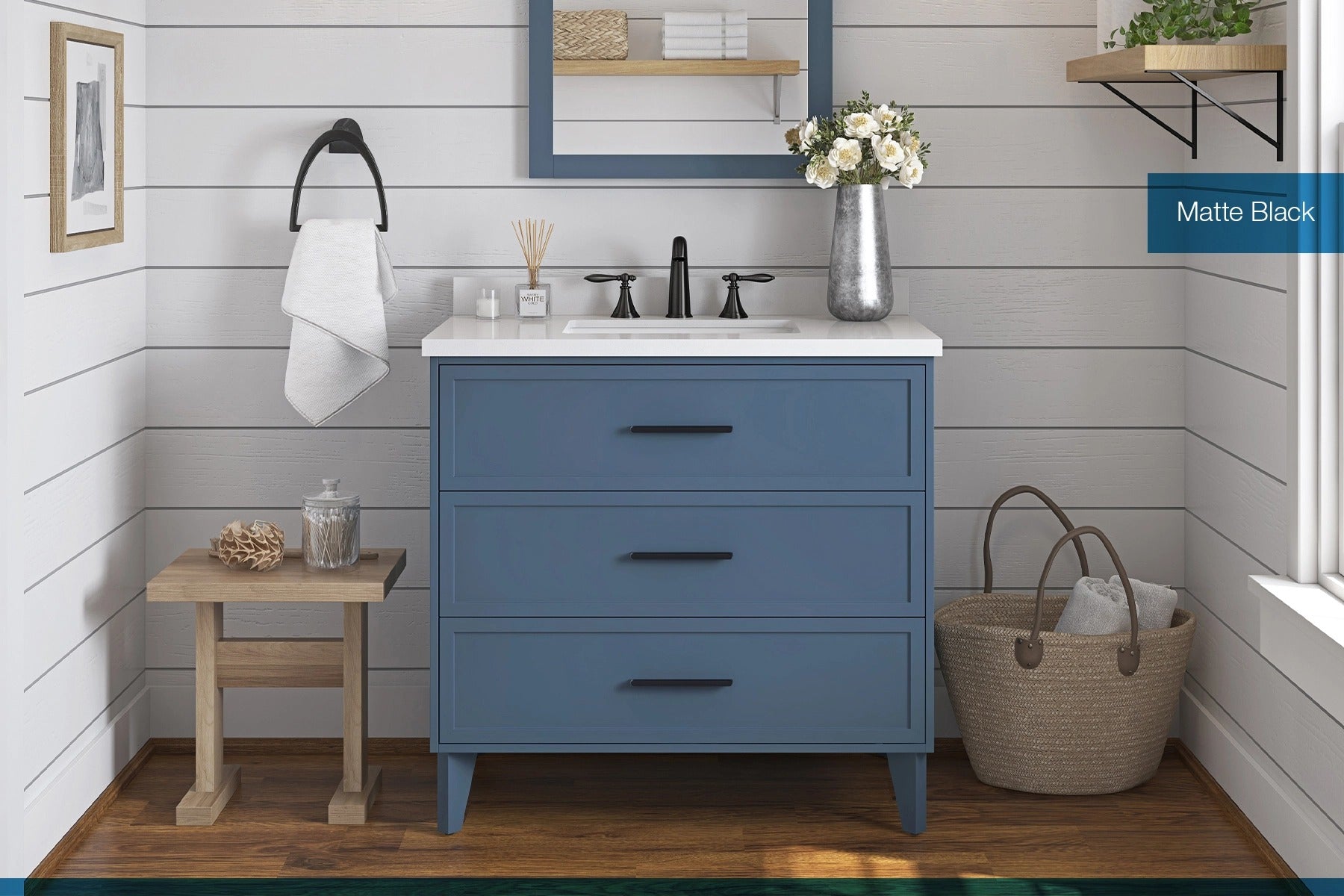 Featuring a stylish finish and a modern slim shaker design, the Colin bathroom vanity by OVE Decors is set to bring a fresh new look to your powder room or small bathroom. Designed with plenty of storage in mind, its three drawers keep everything within reach yet tucked out of sight. There’s even an interior tray in the top drawer for organizing small items like contact lenses, accessories, makeup and more. Topping off the beautiful cabinet is a sleek White quartz countertop and your choice of two sets of included hardware in Matte Black and Brushed Nickel.