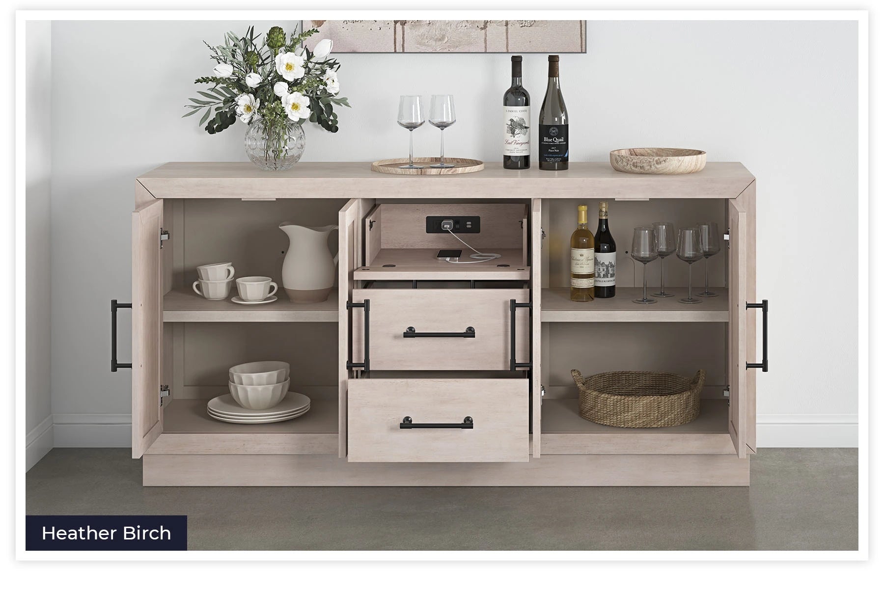 - Interchangeable glass or wood door panels and 2 sets of handles