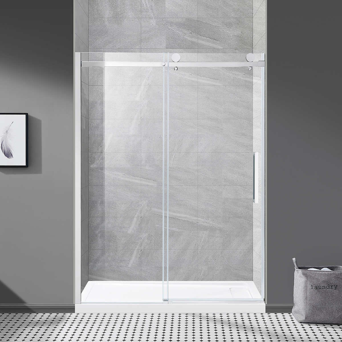 Welcome a zen vibe in your bathroom with the Del Rey Soft-Close Shower Kit that makes loud slams a thing of the past thanks to its soft-closing feature. Putting your safety first without sacrificing style, its 10 mm tempered glass is heat- and shatter-resistant and is completely transparent so you can show off your beautiful shower interior. Shiny Chrome accents on the rail, wheels and handle, contemporary style. With everything needed for installation, simply add the shower head of your choice and your new bathroom will be up and running quickly and easily.
