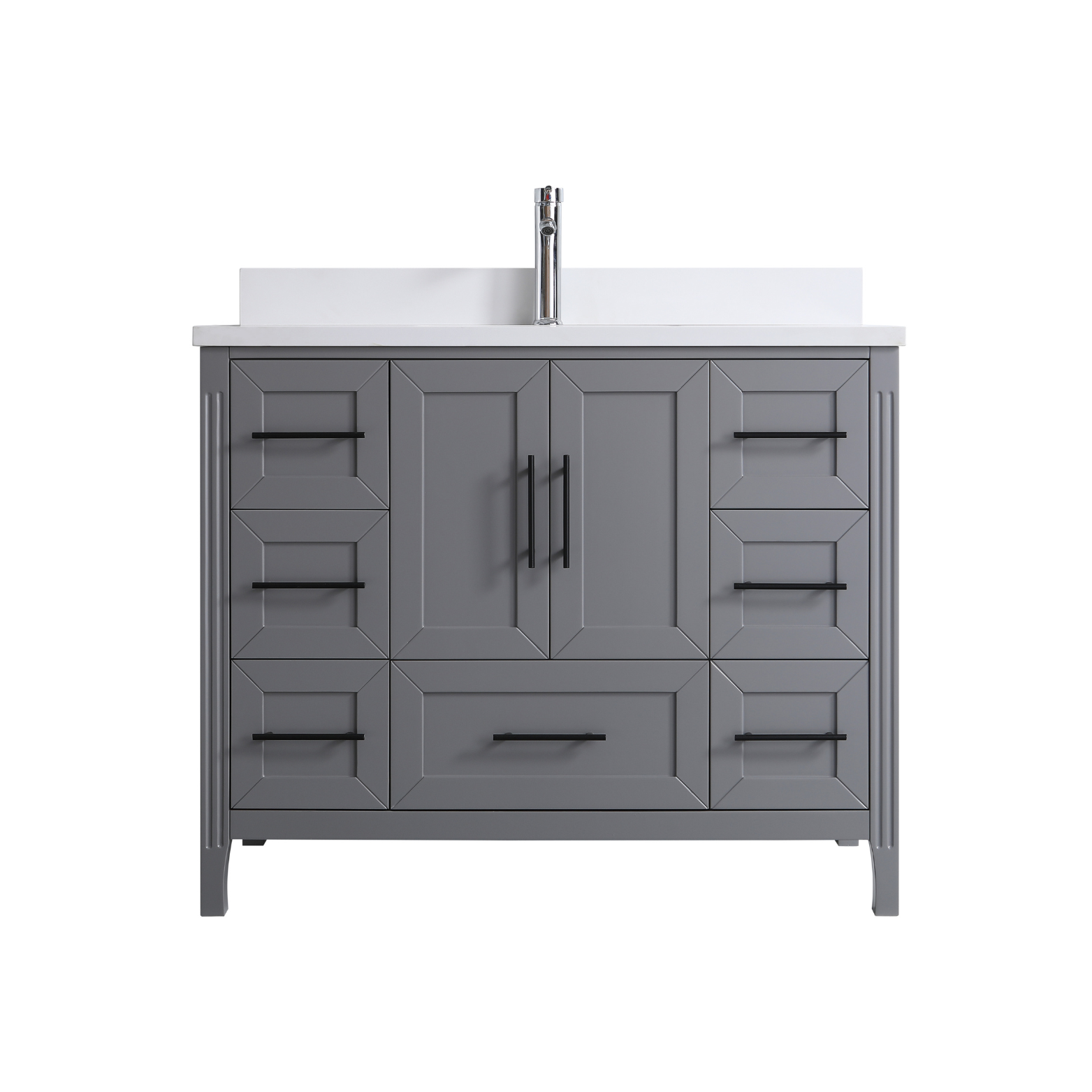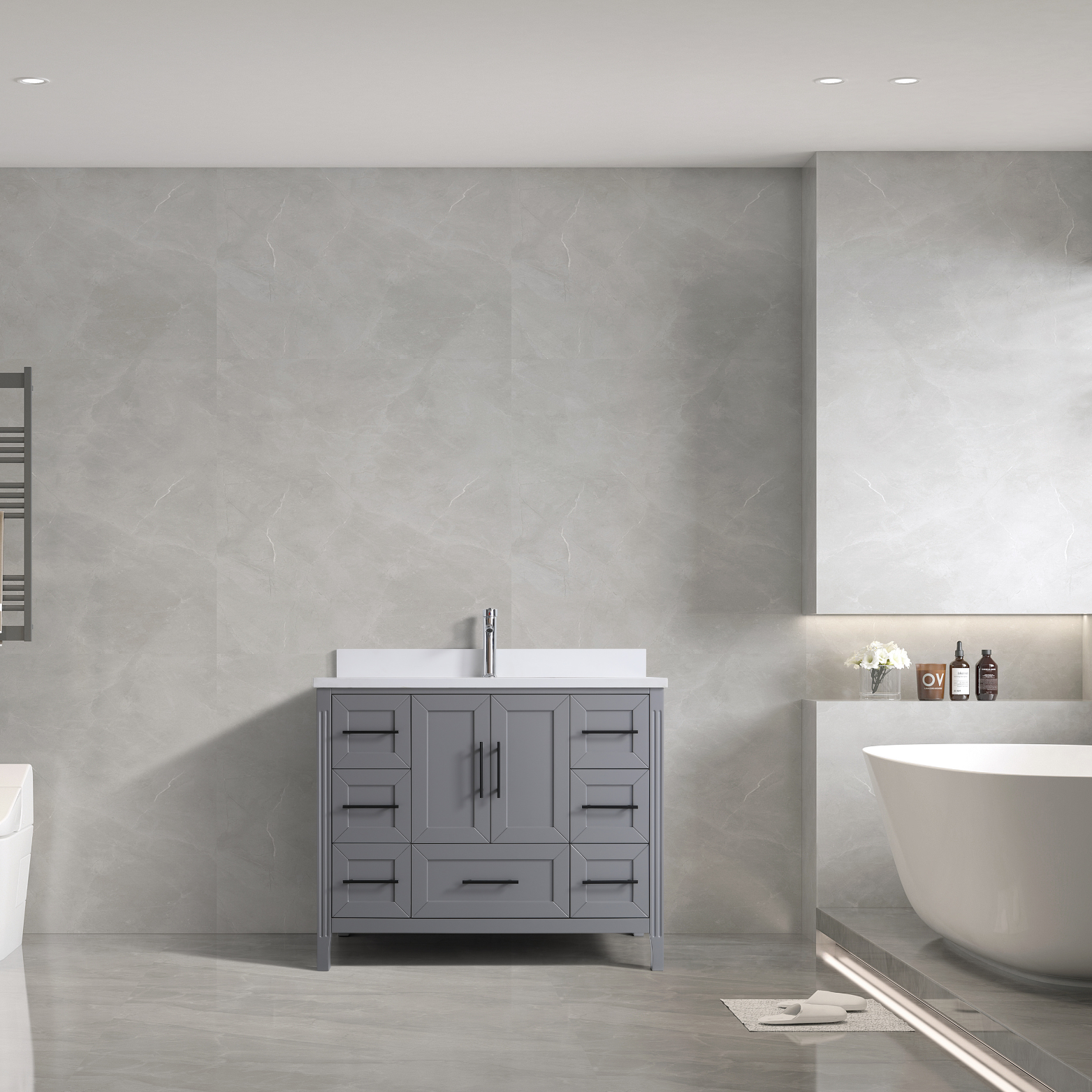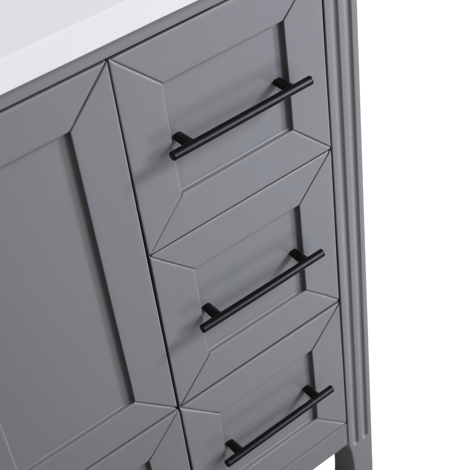 Elevate your bathroom space with the HATAY a perfect blend of elegance and functionality. Constructed from solid wood + MDF with a white lacquer finish, this vanity offers durability and a sophisticated aesthetic. The quartz countertop complements the CUPC-certified ceramic basin, ensuring a high-end look with lasting performance. Designed with seven spacious drawers and two doors, it provides ample storage while maintaining a sleek, organized appearance.