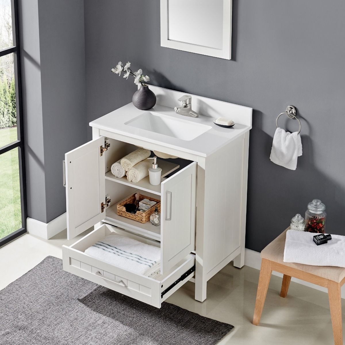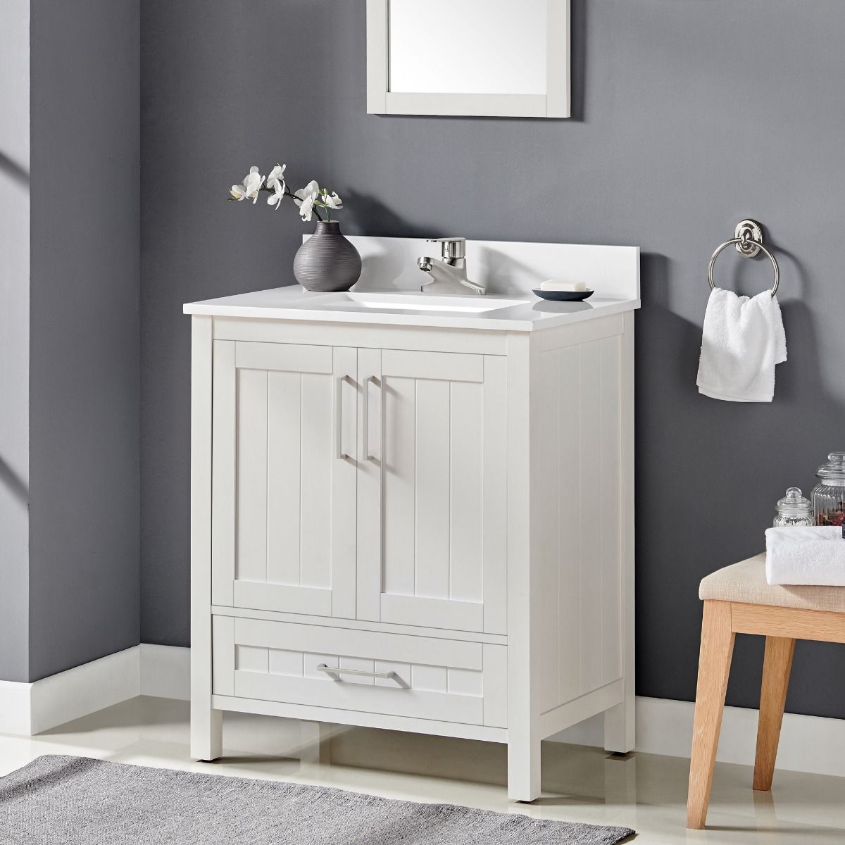 - 30-in W x 19-in D vanity is ideal for small to mid-size bathrooms