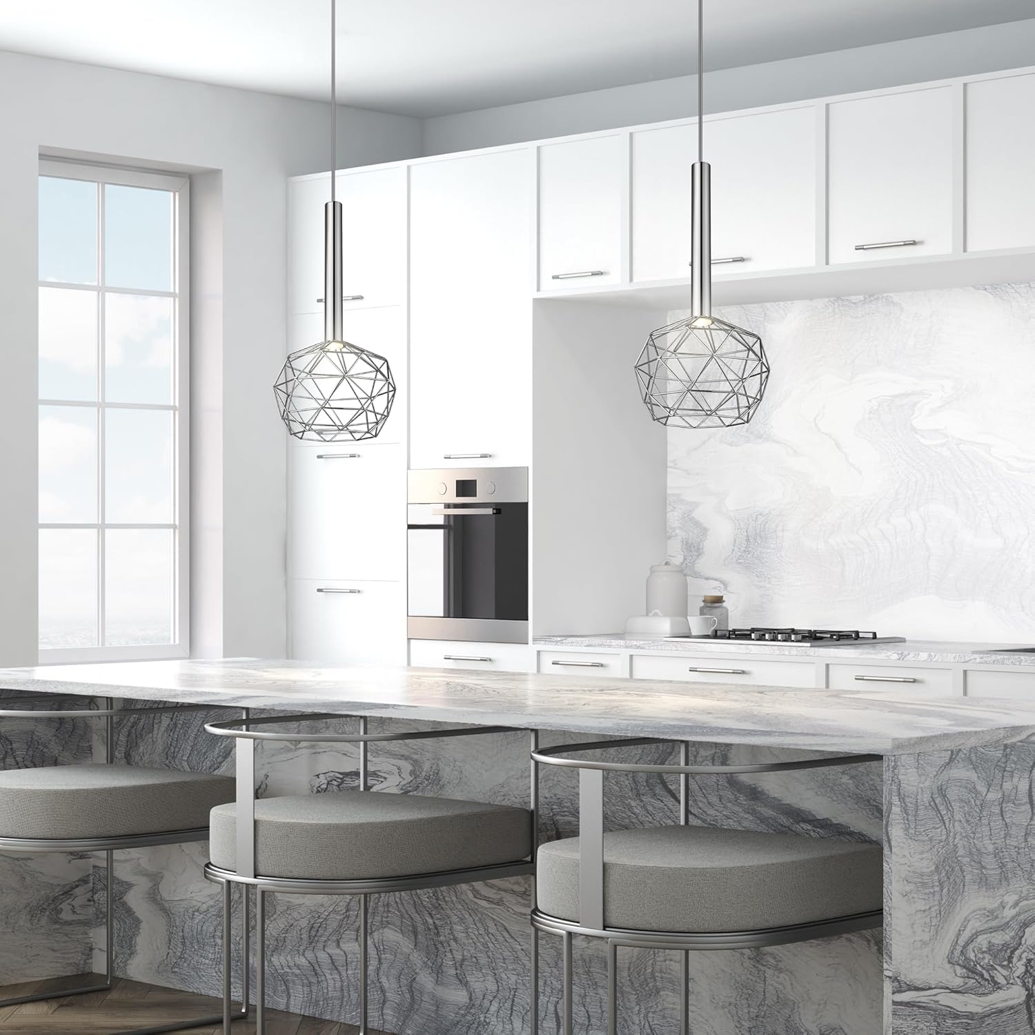 Inspirée par les motifs géodésiques complexes du mouvement moderne du milieu du siècle, la collection d'éclairage Leo par OVE Decors. Cette suspension géométrique d'influence industrielle dispose d'un abat-jour ajouré en métal chromé poli, avec des tiges délicates interconnectées dans un motif arrondi complexe pour un impact élégant et chic et des effets d'ombre fascinants. LED intégrée de 5 W, pour des années d'utilisation économes en énergie. Explorez toute la gamme Leo, y compris un plafonnier encastré à 3 et 5 lumières, une lampe de courtoisie et une suspension en spirale spectaculaire à 4 lumières pour des solutions d'éclairage contemporaines pour toute votre maison.