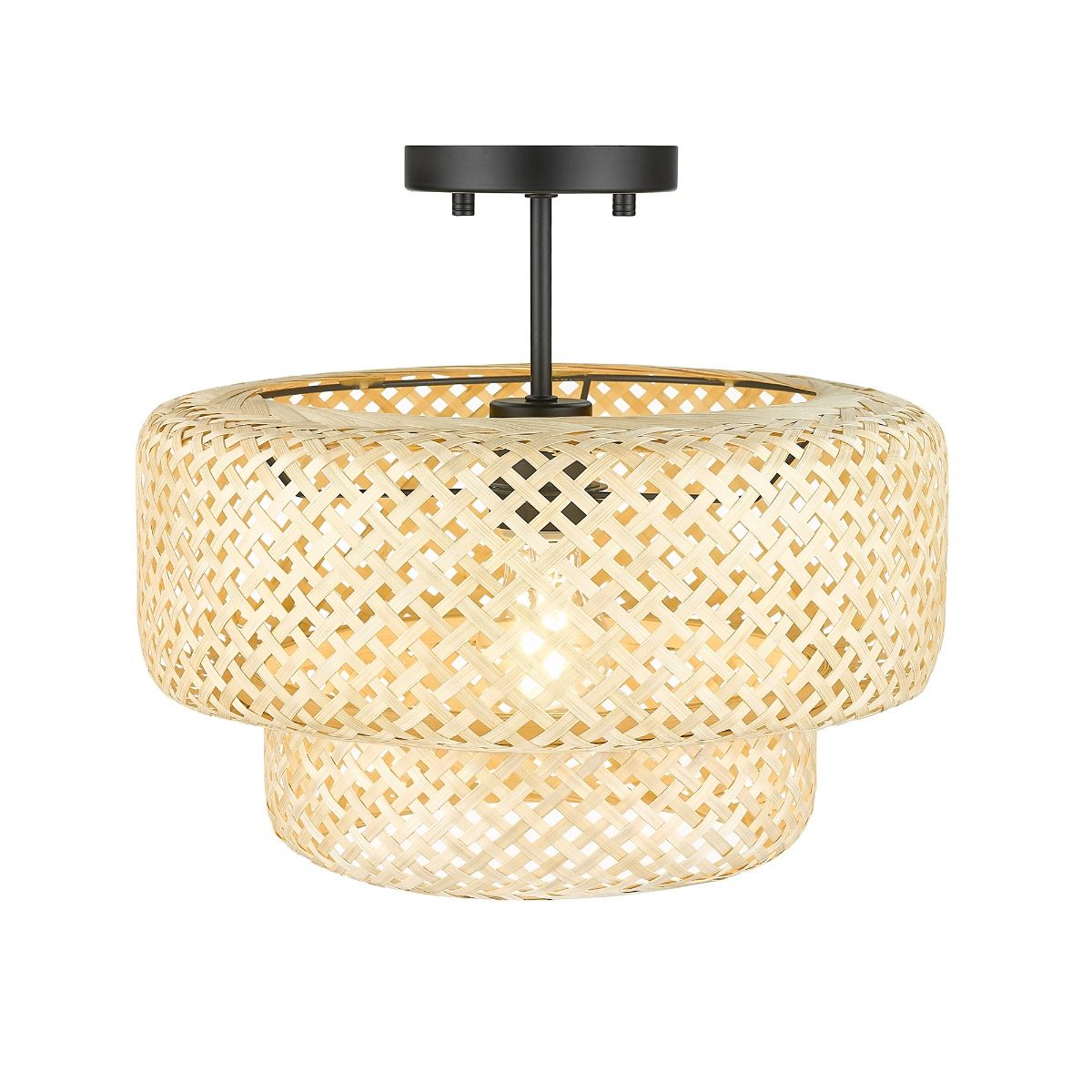 OVE Decors Makara 1-Light Rattan Semi-Flush Ceiling Mount Fixture, Natural