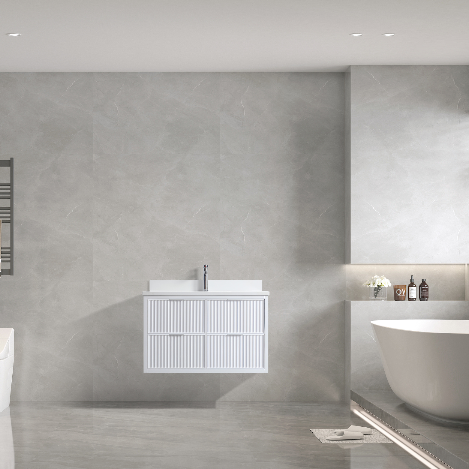Introducing the versatile Banio Unique brand wall mounted bathroom cabinet, featuring a sleek flute exterior is made with PVC film. With silver handles adding a touch of elegance, this cabinet boasts a minimalist and stylish design that is sure to enhance any bathroom decor. Available in a variety of sizes to suit different spaces, this bathroom cabinet is the perfect storage solution for all your bathroom essentials. The spacious interior includes a storage box for easy organization, allowing you to keep your toiletries and accessories neatly tucked away.