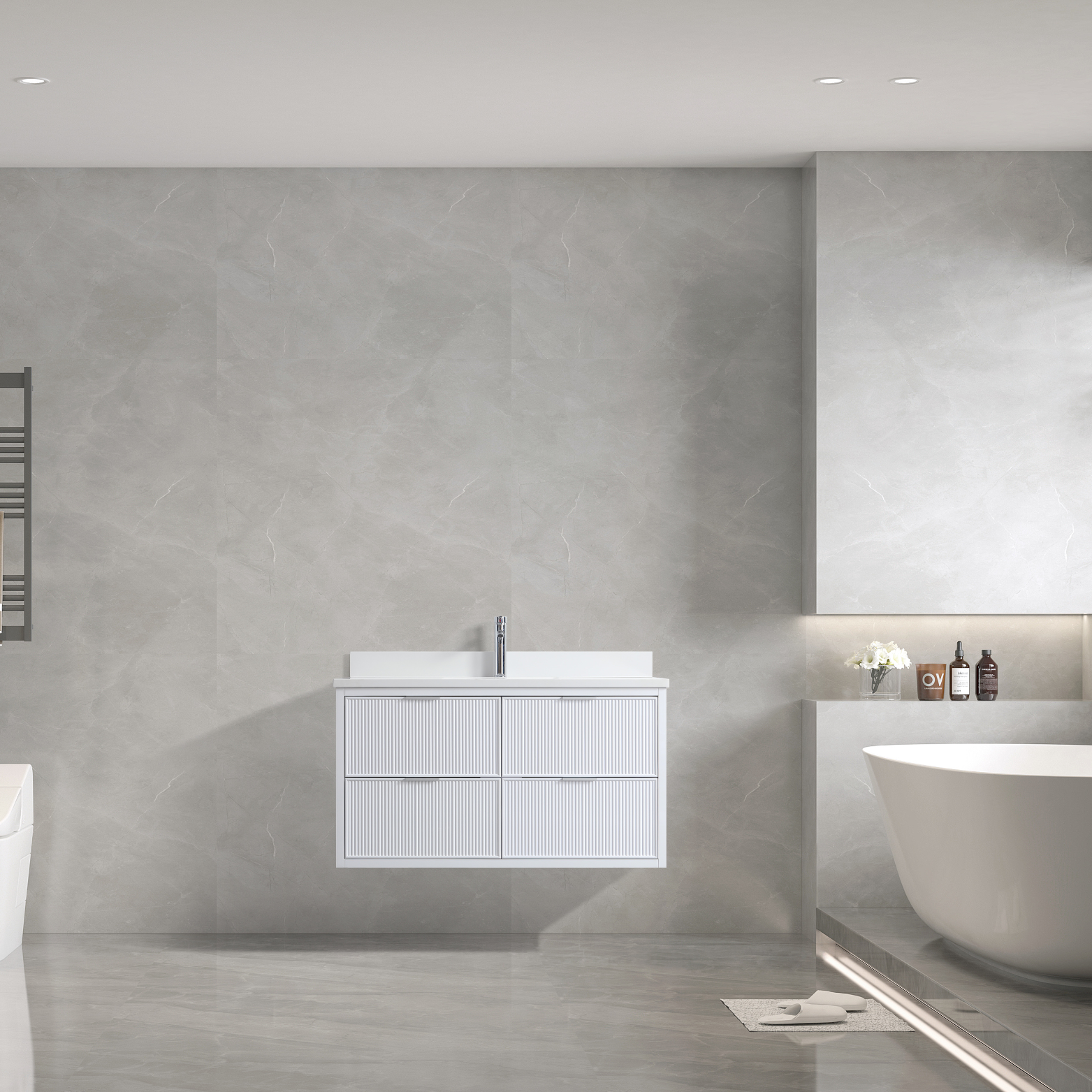 Introducing the versatile Banio Unique brand wall mounted bathroom cabinet, featuring a sleek flute exterior is made with PVC film. With silver handles adding a touch of elegance, this cabinet boasts a minimalist and stylish design that is sure to enhance any bathroom decor. Available in a variety of sizes to suit different spaces, this bathroom cabinet is the perfect storage solution for all your bathroom essentials. The spacious interior includes a storage box for easy organization, allowing you to keep your toiletries and accessories neatly tucked away.