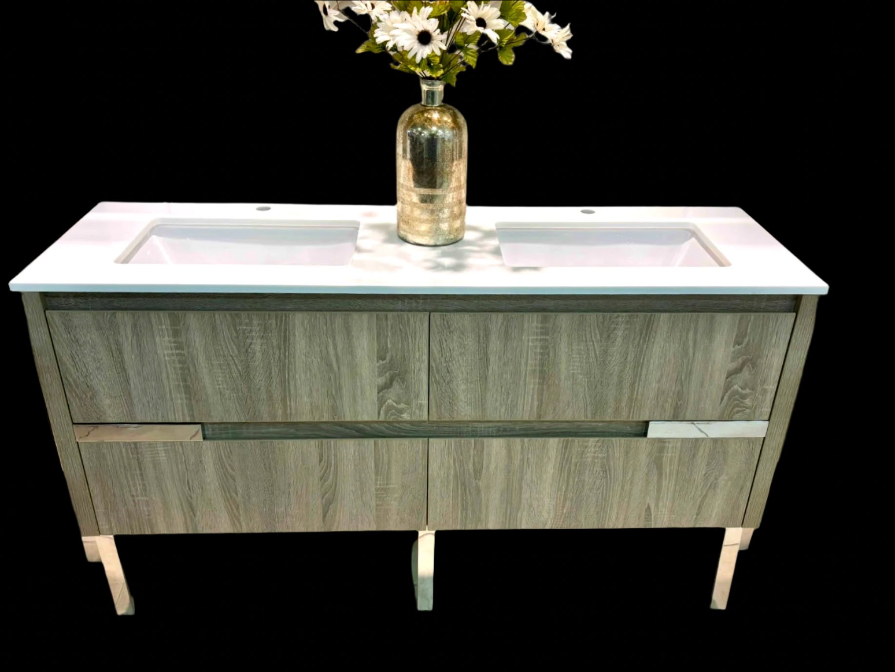 Freestanding & wall mounted vanity, engineered stone countertop with ceramic sink.
