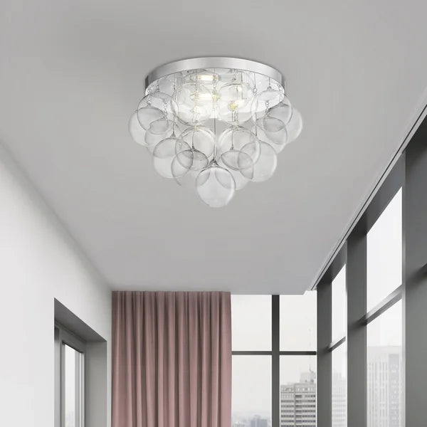 OVE Polaris 3-Light Flush Mount Chrome Finish and Clear Glass Shades