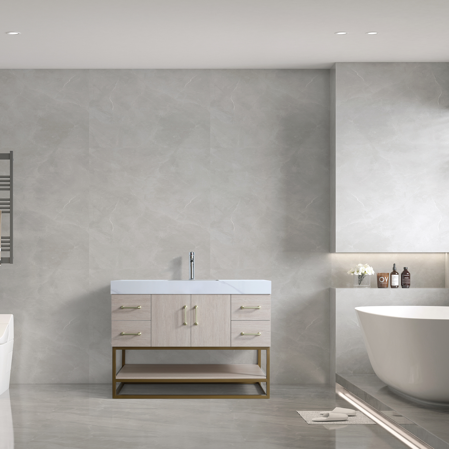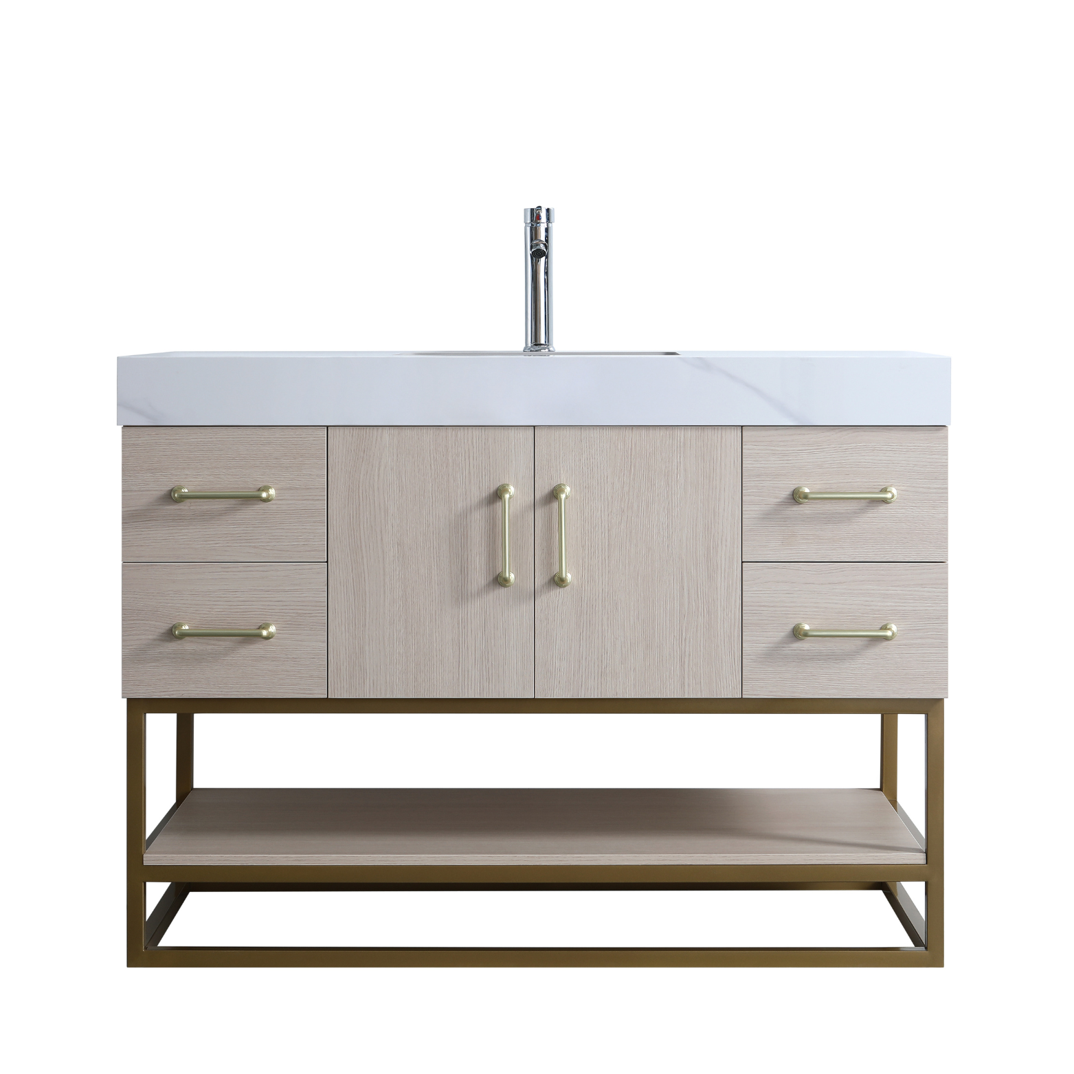 - single jazz white stone countertop with ceramic sink