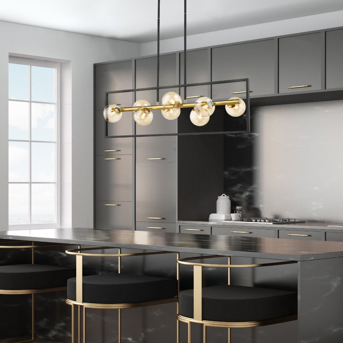 By contrasting the clean round curves of its eight amber-tinted glass shades with the sharp, angular silhouette of the black mount and frame, the Sydney chandelier introduces itself as a fabulous piece of modern lighting design. Its multidirectional light diffusion makes it an effective lighting centerpiece for evening hosting, while the black and gold finishes on the frame look equally beautiful when unused during the daytime. This light comes with all hardware, and dimmable LED bulbs allowing you to set the room’s ambience to your preference.