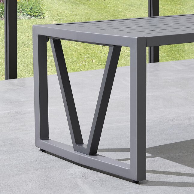 - Includes 1 Aluminum coffee table with slatted tabletop